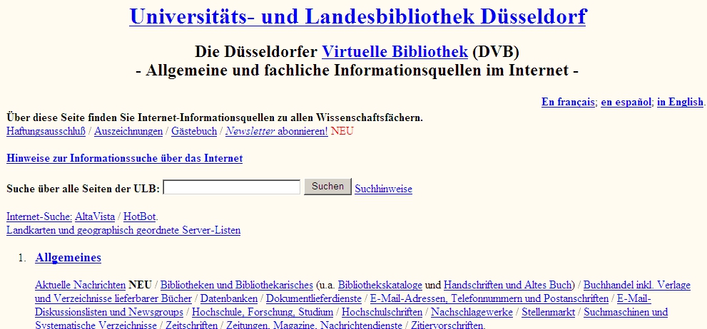 Als einer der bekanntesten Linksammlungen gilt die Sammlung von der Düsseldorfer Universitätsbibliothek. Mitte der 1990er Jahre wurde mit dem Aufbau von Linklisten begonnen. Dies wurde als Düsseldorfer virtuelle Bibliothek (DVB) bekannt. Der Koordinator Thomas Hilberer weist darauf hin, dass die DVB über 400 Seiten mit 15.000 Links anbot, welche systematisch angeordnet und größtenteils kommentiert waren.