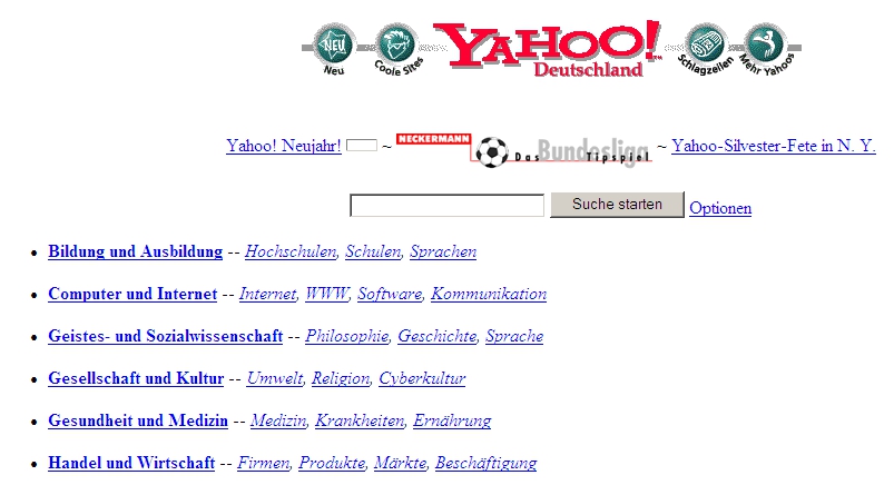 Vielleicht können Sie sich noch an die WWW-Seite aus dem Jahr 1996 von yahoo.de erinnern ?